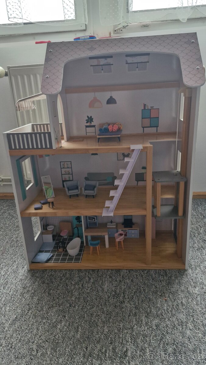 Prodám domeček pro panenky s výtahem, málo používaný viz. foto