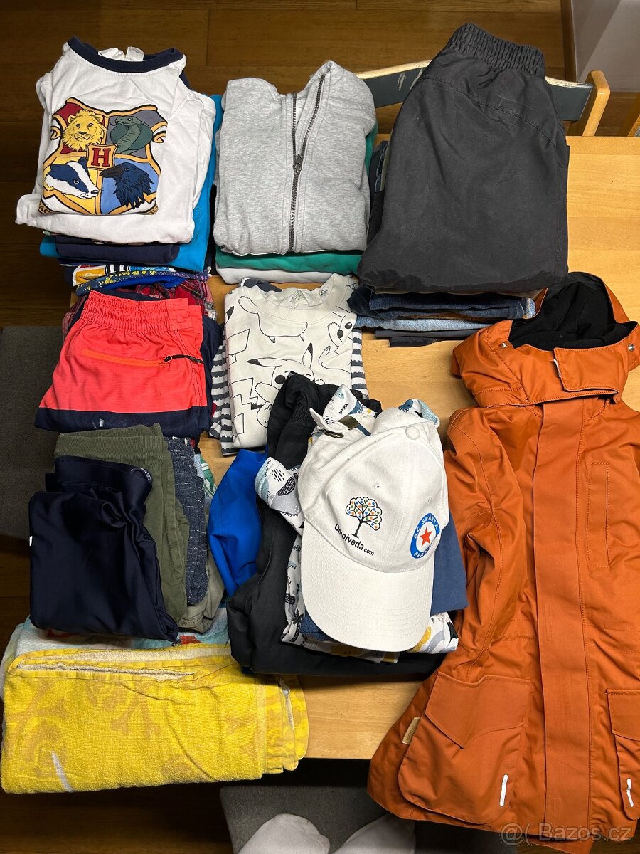 Obsah: 17x tricko, 5x mikina, 7x kalhoty, pyzama, plavky, 5x kratasy, 1x teplaky a 1x teplaky sportovni, 2x bunda Reima, oteplovaky Reima, cepice, podvlikaci sada, rucniky, outdoor vesty