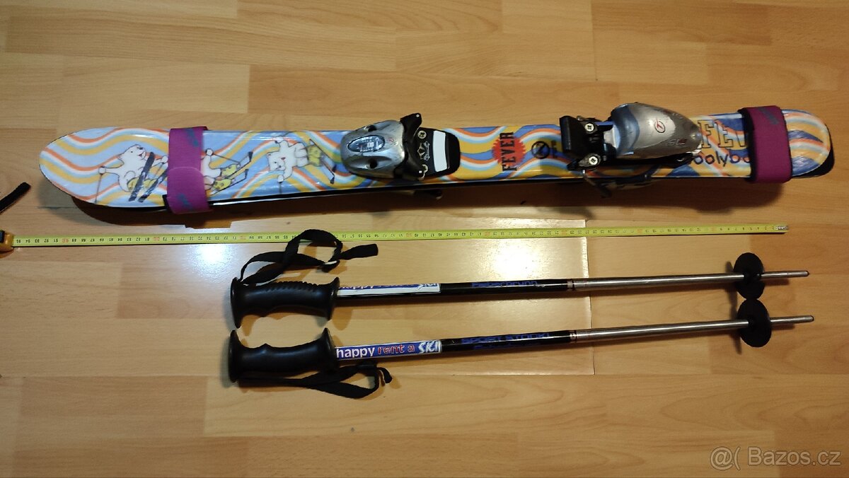 Prodám dětské lyže s hůlkama 90cm. Možné i s lyžákama.