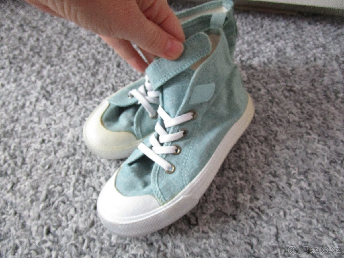 Prodám kotníkové plátěné tenisky vel. 29 vhodné do tělocvičny i ven, nové, přesto podrážka mírně zežloutlá, viz foto. Mohu nabídnout i mírně nošené v šedé barvě.