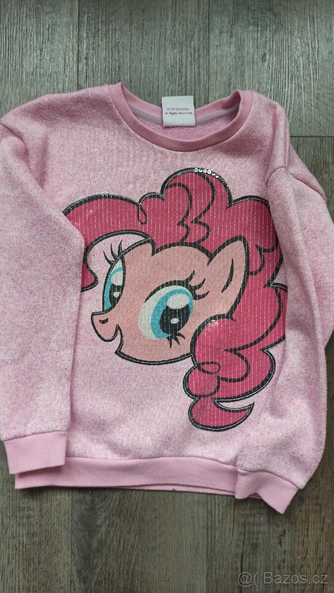 Krásná růžová mikinka,teplá, určitě vhodná na podzim, zimu,oblíbená postavička Pony,flitrovaná,v hezkém stavu,sem tam mini žmolíček,jinak na parádu pořád je.