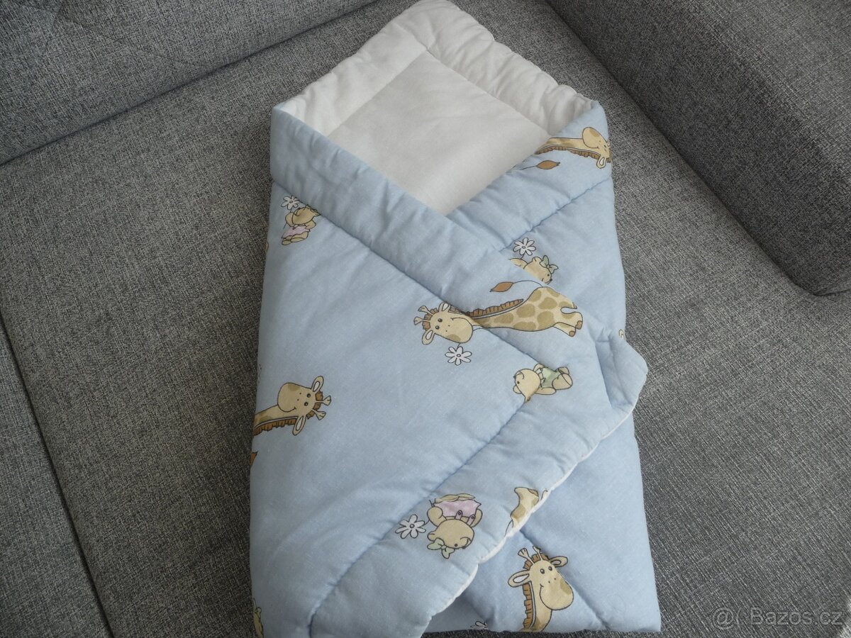 Zapínání na suchý zip, vyrobena z 100% bavlny, vyplněna dutým vláknem, rozměr zavinovačky je 72x72cm. Zavinovačku je možné později použít jako praktickou deku do postýlky či do kočárku, nebo jako hrací deku. Pěkná.