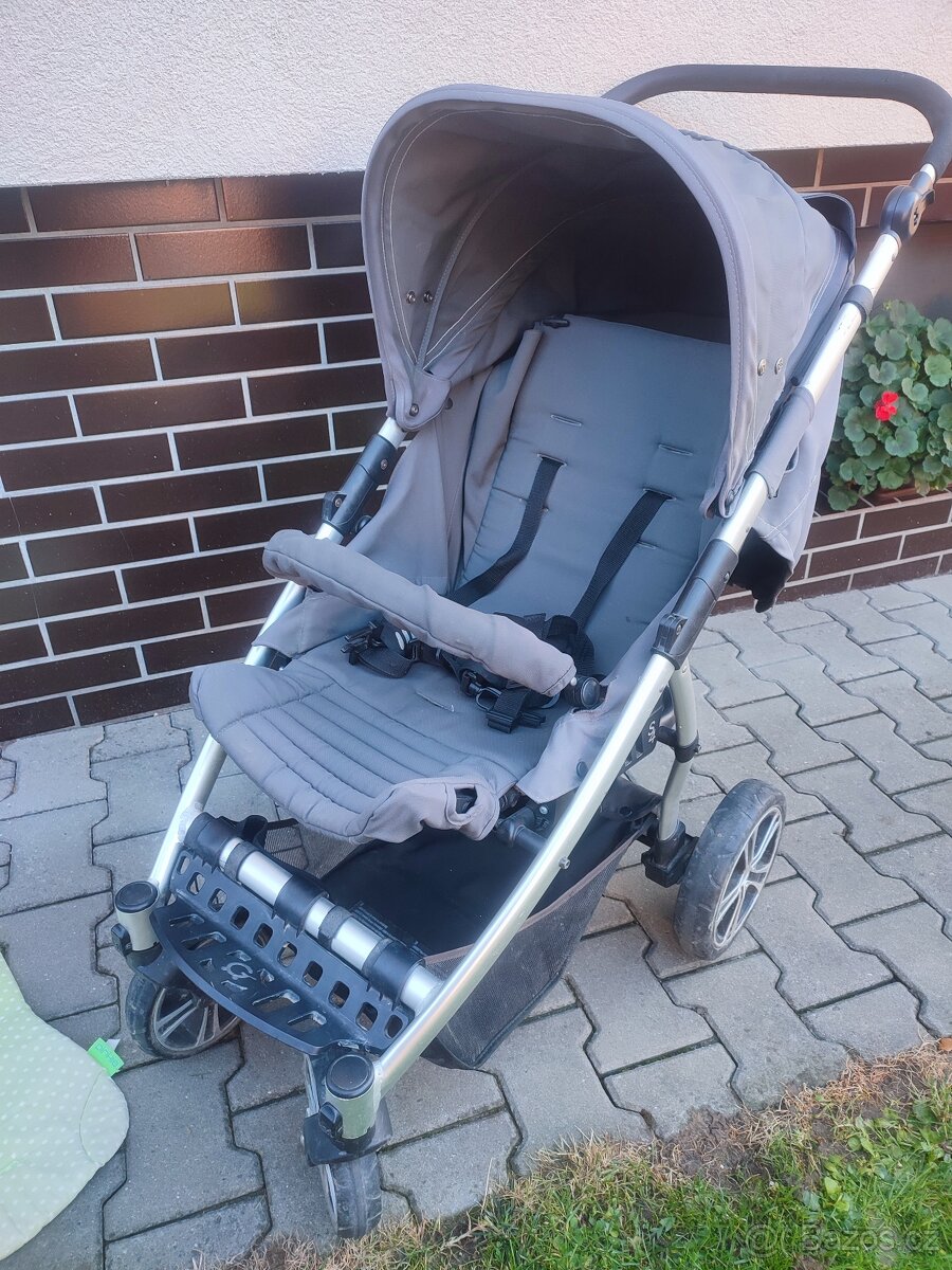 Prodáme kvalitní,námi již nevyužitý sportovní kočárek s nosností 20kg+9kg nákupní košík. Je velmi prostorný,skladný,lehký vhodný k cestování. Zvládne i složitější terén,odpružená kola, možnost aretace. Tichý chod kol, nehrkaji. Polohovatelná opěrka zad,madlo více poloh,opěrka na nohy polohovací,5bodovy pas. Prodloužená stříška. Pratelný potah. Kočárek je v super stavu,pouze nějaké oděrky. K němu přidám podložku, pláštěnku,síť proti hmyzu a zimní rukávník (viz foto,byl šitý). Osobní odběr Kobeřice nebo Vysoké Mýto po domluvě