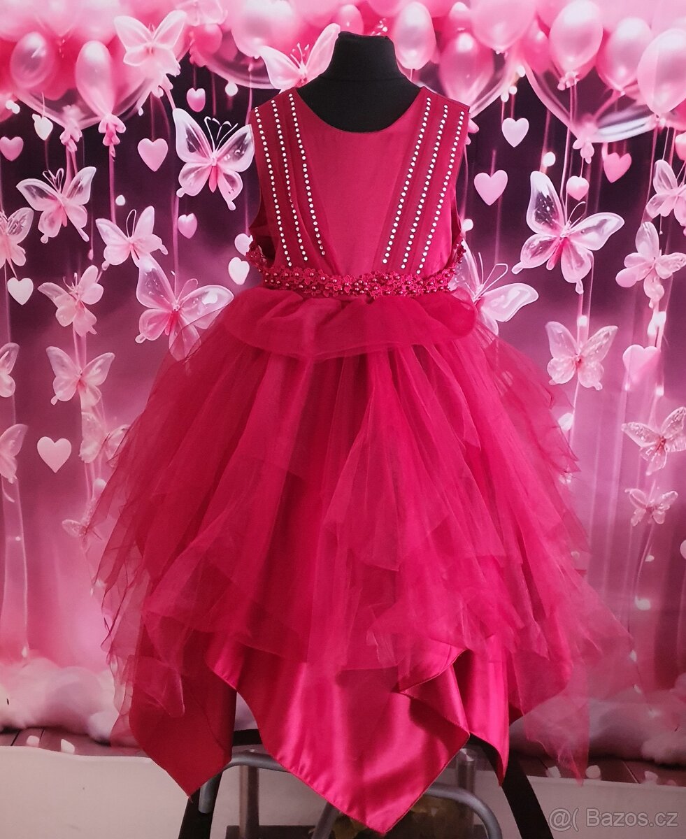 Dětské asymetrické šaty v červené vínové barvě na slavnostní příležitosti a focení