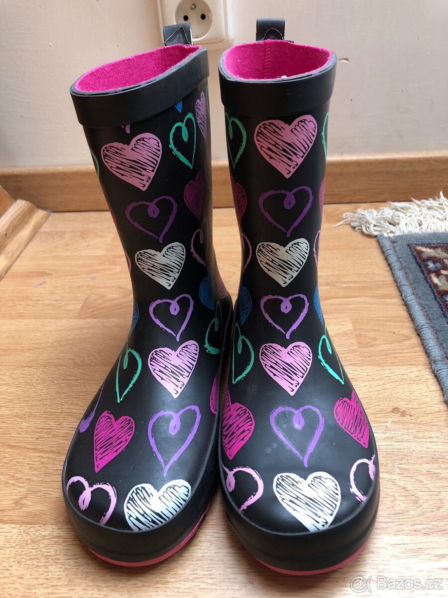 Prodám holinky vel.34 - nové, nepoužité, černé se srdíčky zn. Corting, cena: 150 Kč.