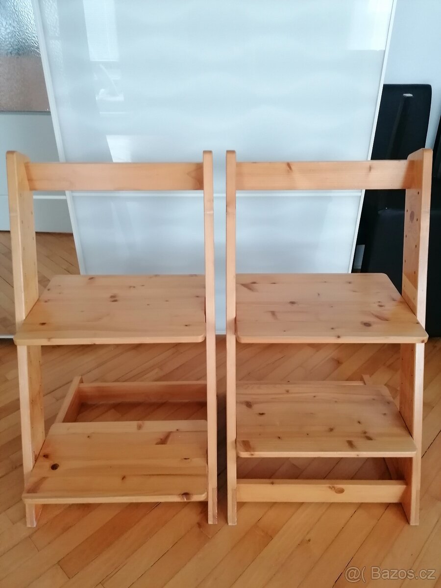 Rostoucí židle dřevěná - [17.12. 2025]Výškově a hloubkově nastavitelné sedátko a podnožka. Varianta do 100 kg (tmavá - 1.800 Kč), do 70 kg (světlá - 800 Kč). Osobní předání Praha 78