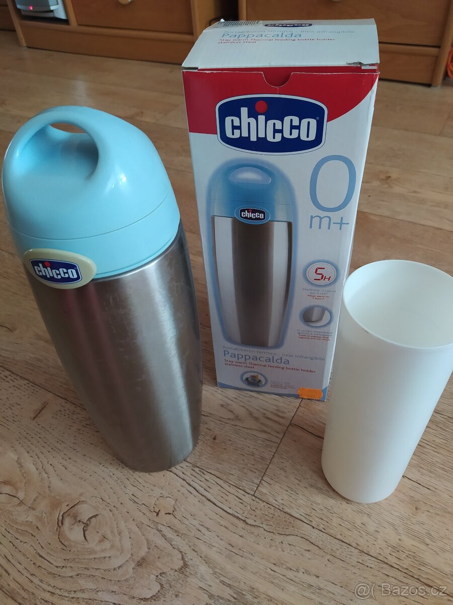 Termoska Chicco z nerezu na udržení teploty kojeneckých lahví.