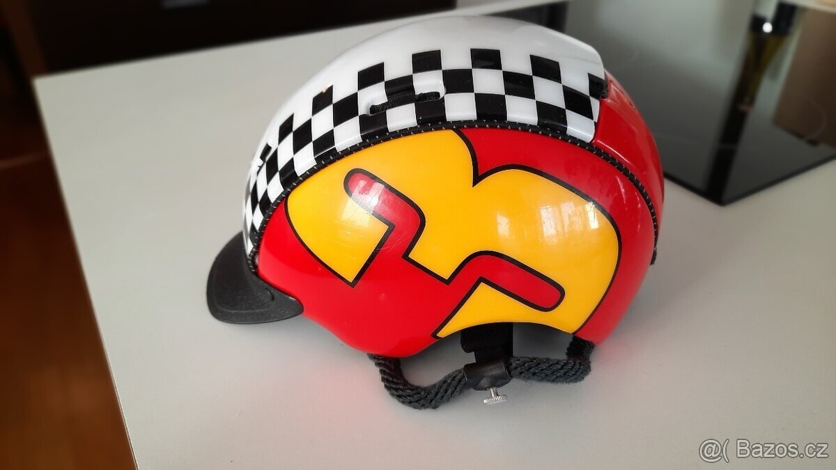 prodám tuto hezkou závoďáckou dětskou helmu na kolo nebo koloběžku. Velikost se nastavuje kolečkem v zadní části helmy - velikost 50-55cm. Značka helmy - Casco.