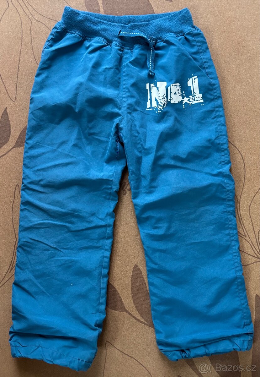 Kalhoty s bavlněnou podšívkou vel. 122, zn. Pidilidi. Bezva stav, jen párlý rozkrok, třeba zašít.