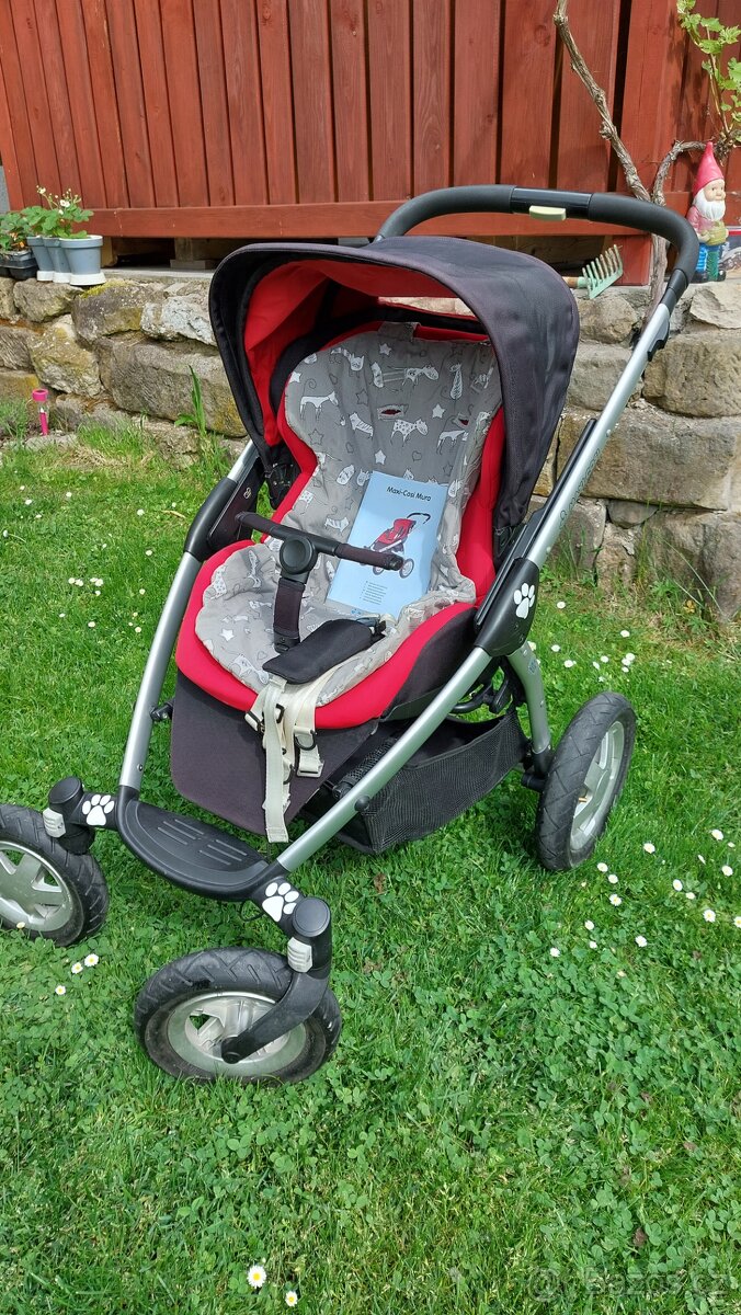 Součástí je hluboká korba, sporťák a autosedačka ve stejné barvě (zeleno-hnědá kombinace). Vhodné od narození až do cca 3 let.