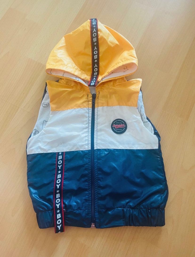Nová slabá vestička bez rukávů, nenošená (nestihli jsme unosit). Věkově odhaduji 1,5 - 3 roky.
