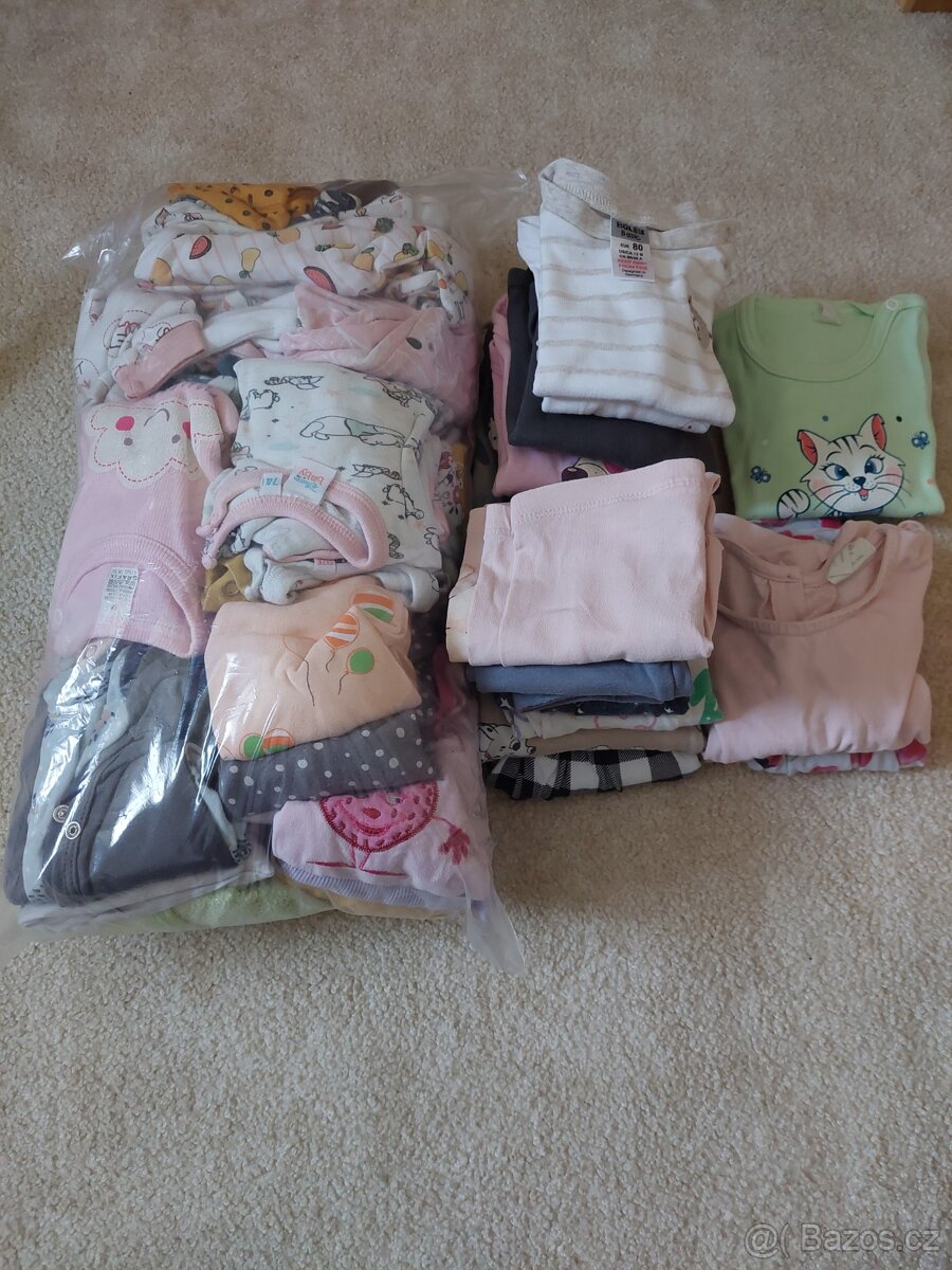 Nabízím oblečení po holčičce velikost 68 - 92 (17 x body s dlouhým rukávem, 7 x polodupačky, 2 x tričko, 2 x šaty, 2 x dupačky, 5 x tepláky, 3 x legíny a 6 x body s krátkým rukávem, 4 x overal s dlouhým rukávem a 1 x kabátek). Třeba ještě někdo užije🙂. Osobně v Novém Městě nad Metují