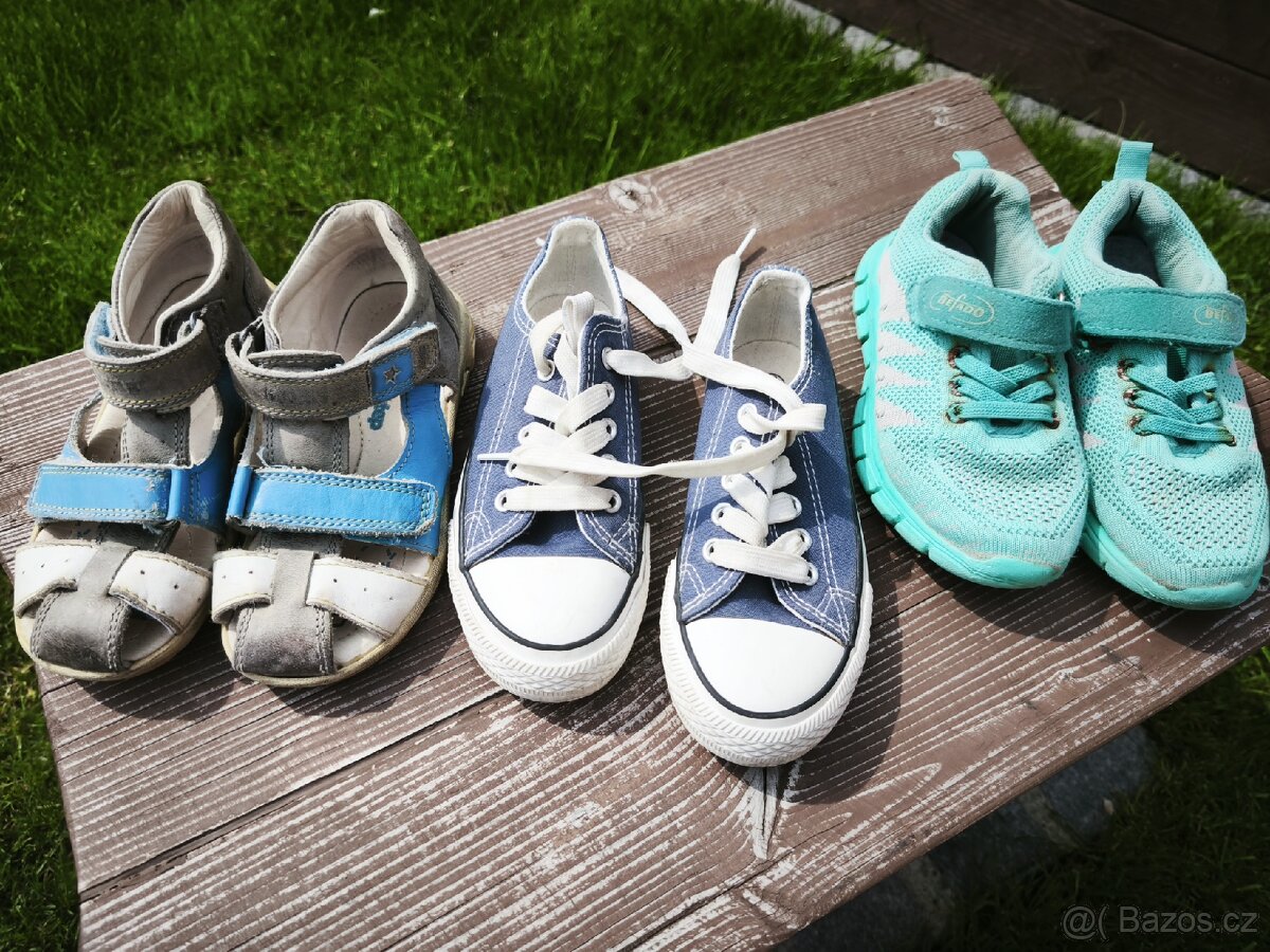 Prodám používané boty , sandále D-Step vel 28, zelené tenisky Befado vel 29 a modré tenisky Lidl velikosti 28. Všechny tenisky jsou vyprané.Cena za všechny 3 ks 300 Kč