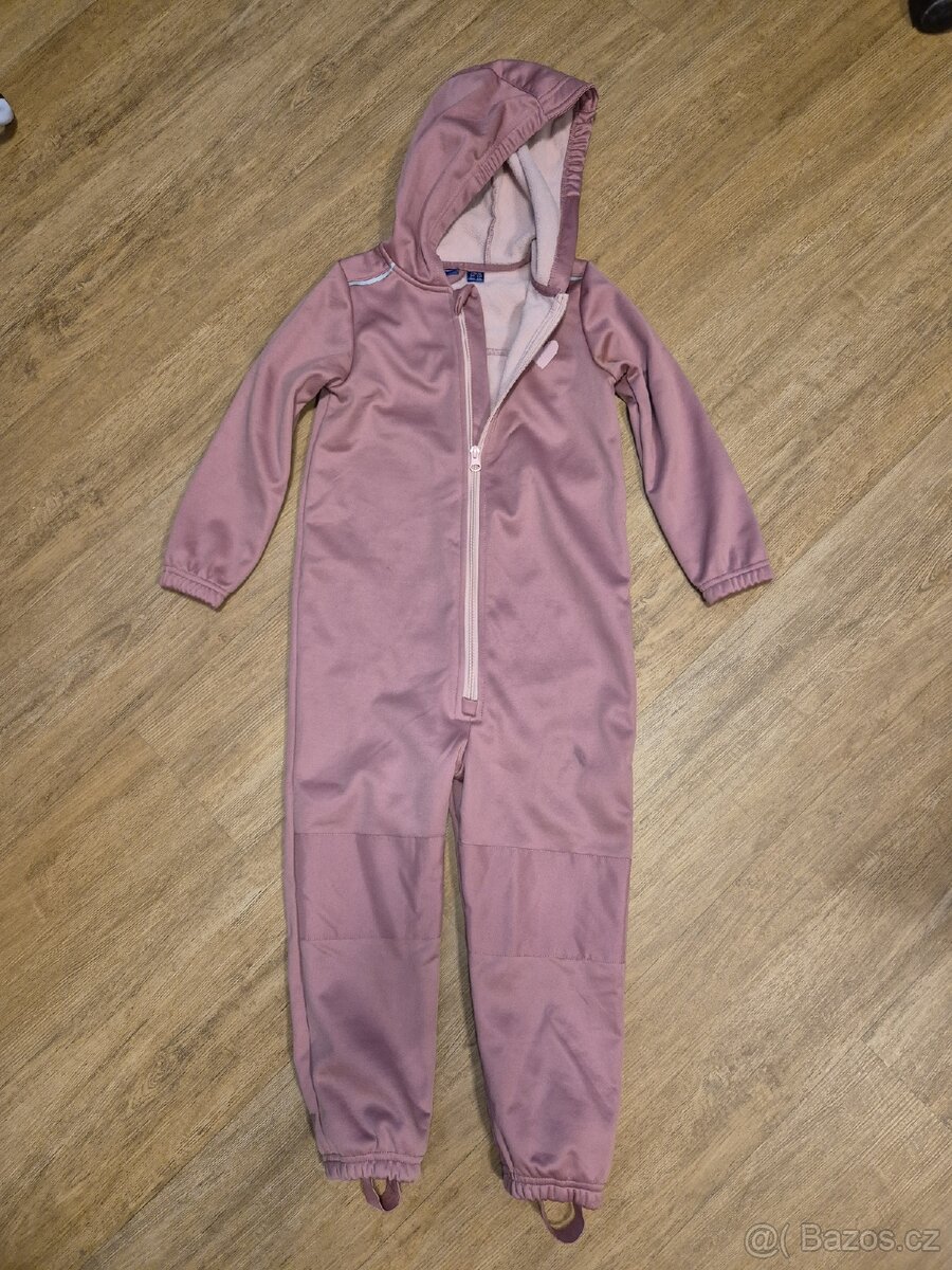 Dívčí softshellový overal s podšívkou. Podšitá fleecem. Vhodná na podzim do deštivého počasí. Velikost 110/116. Značka Lupilu.