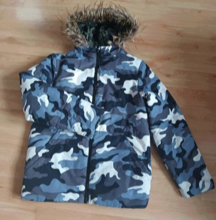 Vel. 164. Má jen zašitou kapsu, jinak je v pořádku. Za 200 Kč