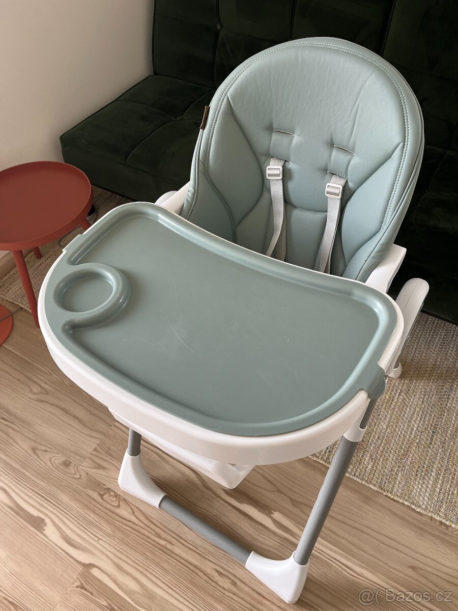 Dobrý den, prodám moderní jídelní židličku (lze nastavit i do lehu a používat pro nesedící děti jako lehátko, aby na vás viděli např. v kuchyni). Je v dobrém stavu až na odrolenou ekokůži mezi nohama viz foto. Osobní předání v okolí Pardubic nebo HK, po dohodě i Praha.