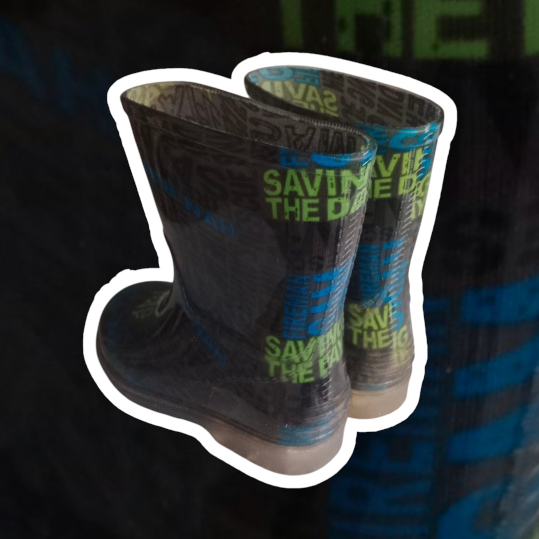 1) gumáky/ holinky s příšerkou, vel.24, 40Kč;