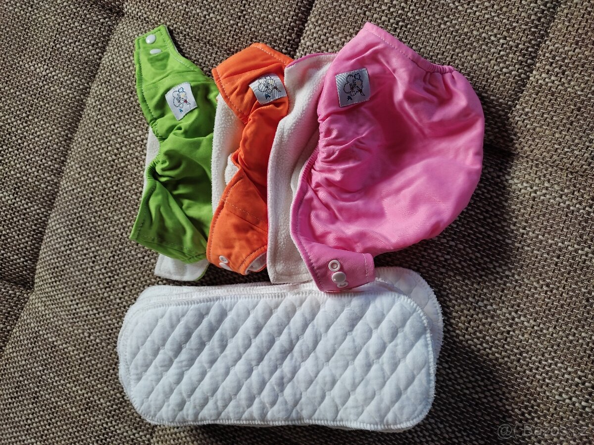 Nabízím 10 ks plen a k tomu 3 ks svrchních kalhotek. Nové, nepoužívané.