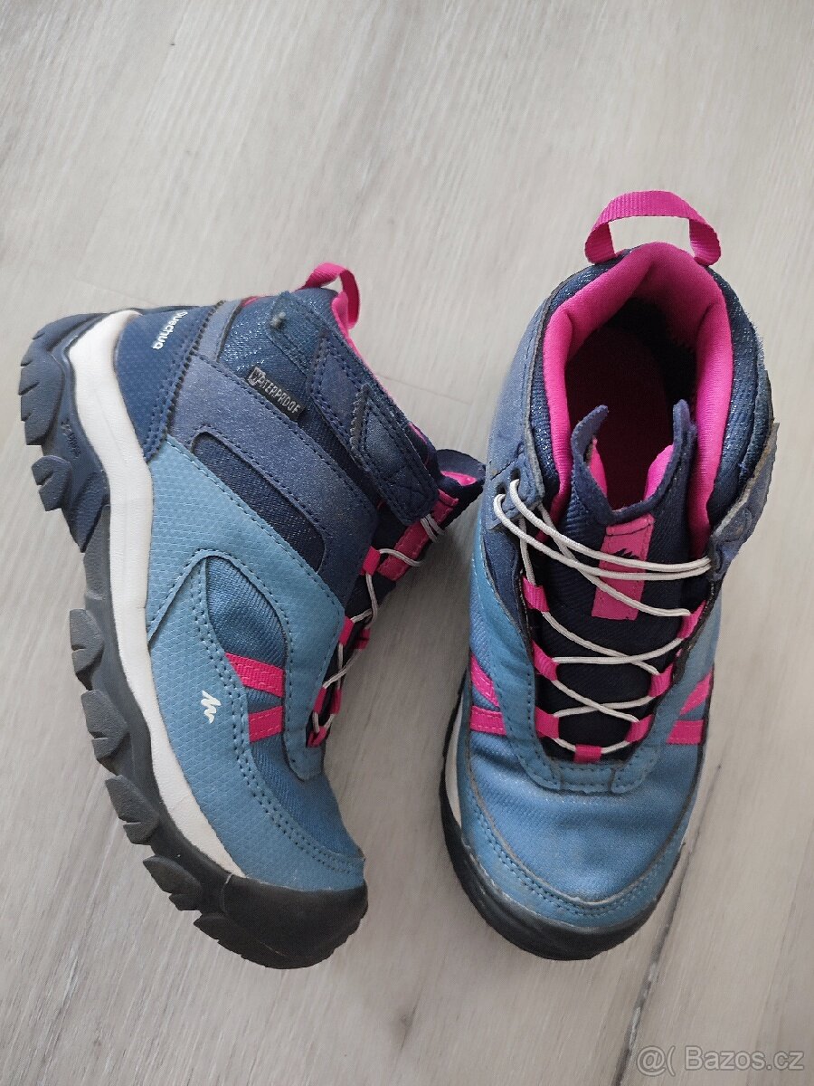 Dívčí nepromokavé turistické boty na suchý zip, vel. 34 (stélka 218 mm).