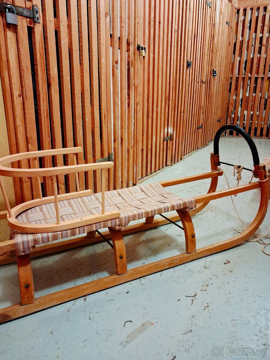 Detske dřevěné sáně s ohrádkou Nové - [29.12. 2025]Detske dřevěné sáně s ohrádkou a průpletem. Jde o menší saně o délce 85cm vhodné pro menší děti. Ohrádka je oddělitelná. Původní cena 2200.