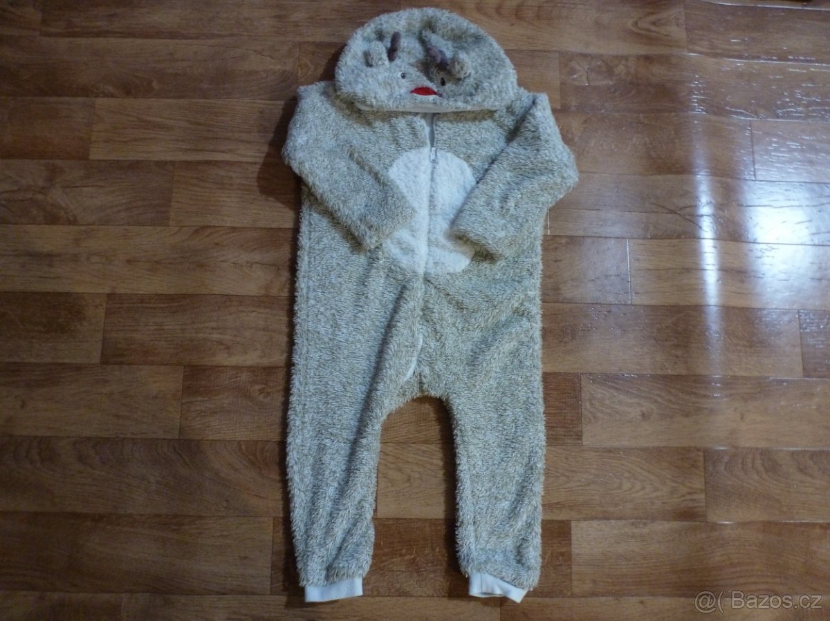 Dobrý dem, prodám dětský teplý světle hnědý overal s kapucí "Sobík". Na kapuci jsou růžky, ouška, očička a čumáček sobíka. Rozepínání k rozkroku zip. Vel 92-98. Cena 80Kč.