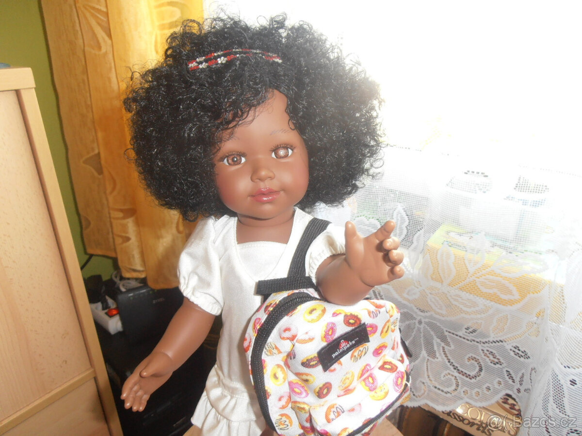 Prodám krásnou snědou panenku 43cm velkou v letních šatičkách,s batůžkem a tenisovou vybavou