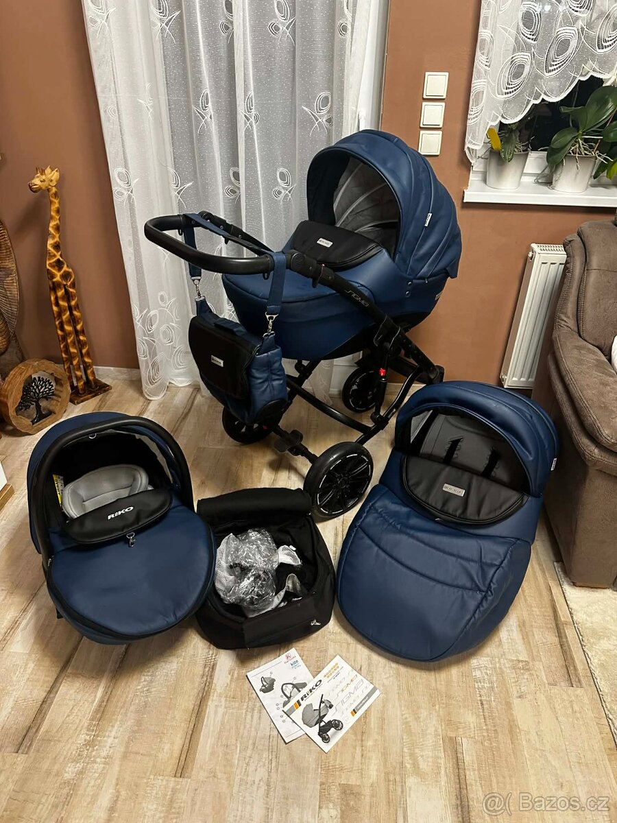 Prodám kočárek Riko Sigma v modré barvě z eko kůže. Jedná se o trojkombinaci – hluboká korba + sportovní verze a vajíčko