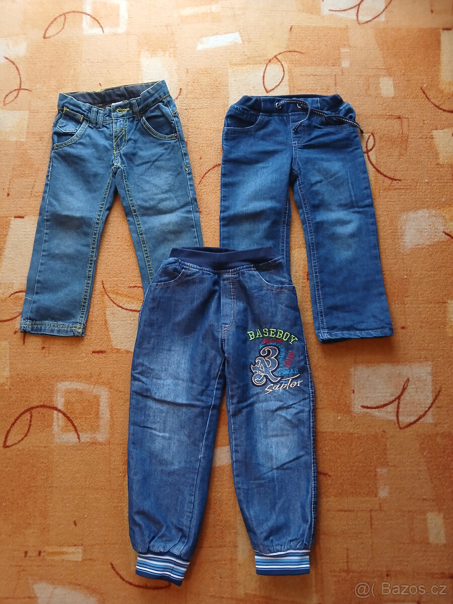 Prodám džíny pro chlapce: vel. 98 tenké a 104 ppodšité bavlněnou látkou, cena 150Kč.