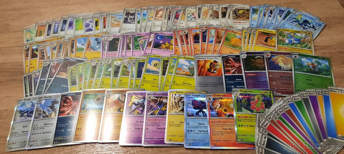 originál, karty by se neměly opakovat, slušný základ pro komplet obyč. a holo karet, asi 95 ks obyč.karet, 16 energií, lesklé 11 holo a 5 reverse. PPLbox 76 Kč