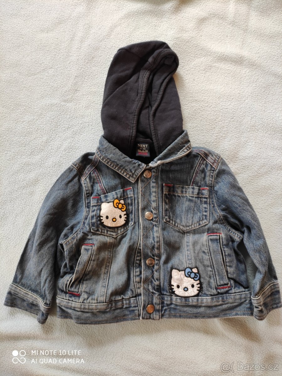 Prodám bundičku NEXT Hello Kity, 9-12 měsíců, 80 cm. Džínová, na patentky. Top stav!
