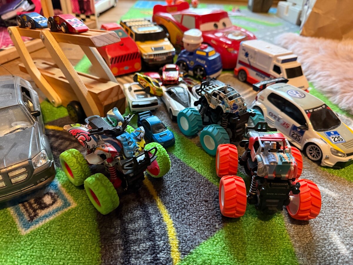 Cena za všechna autíčka a auta (některá na setrvačník) i se skládací silnicí a otevíracím McQueenem - ten lze použít pro závody - je v něm startovací rampa pro dvě autíčka, která se z něj vypustí a můžou závodit. Některá autíčka jsou hraná více, některá jako nová.