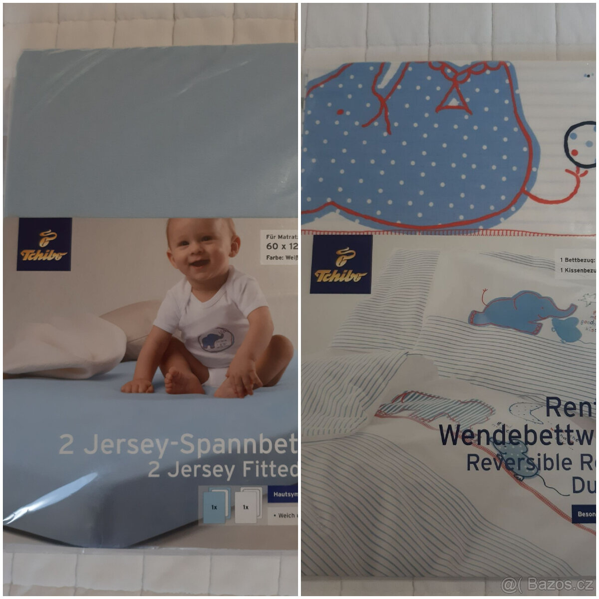 Nepoužité dětské povlečení a prostěradla do dětské postýlky. Nové, nepožité. Tchibo.