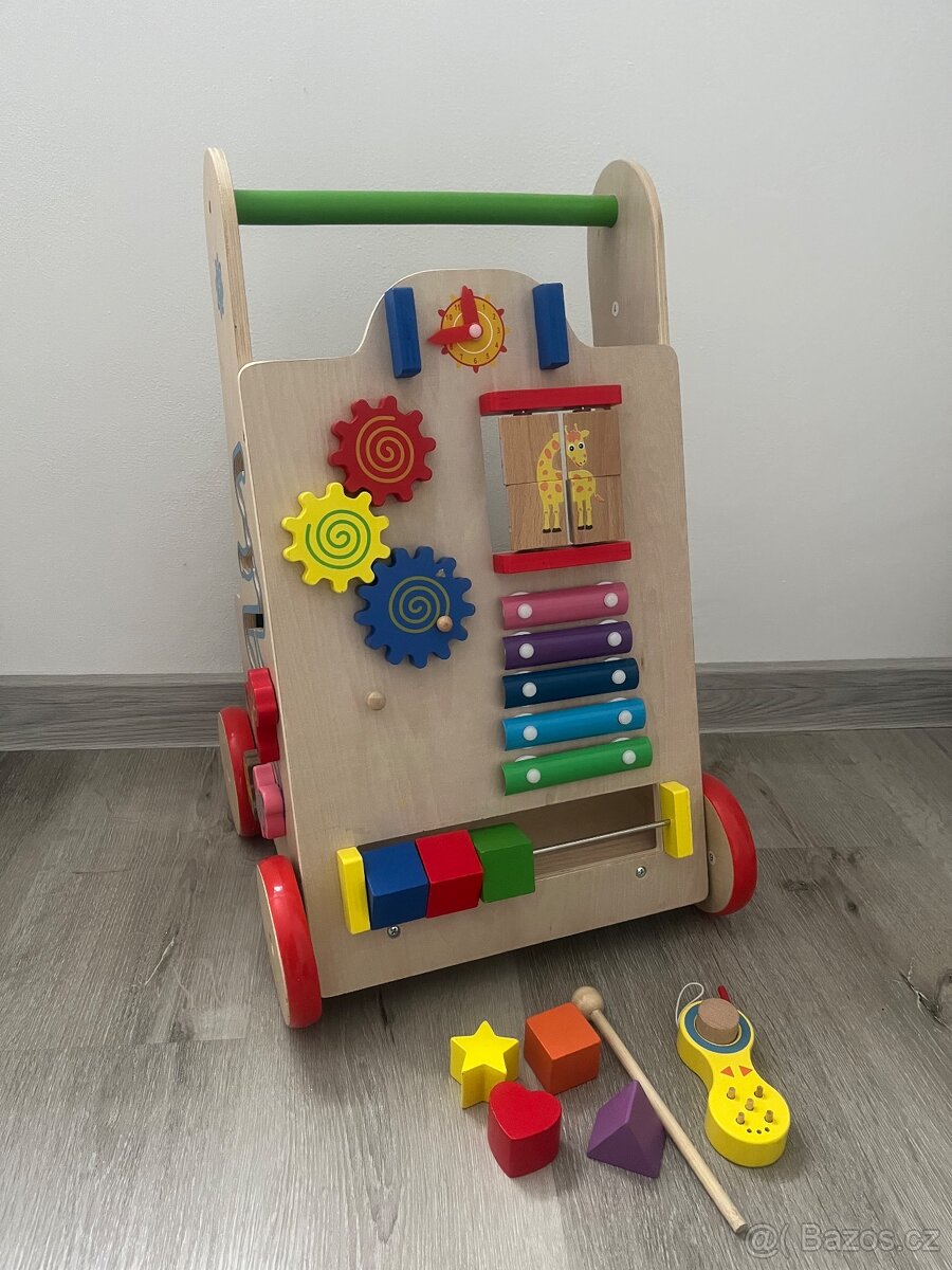 Prodám nepoužívané chodítko. K chodítku ještě patří telefon, dřevěné tvary a palička.