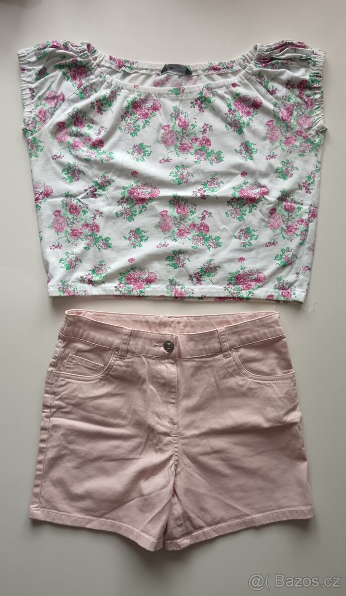 1. Krásné, meruňkové kraťasy pas 36 cm, CD 34 2. Krásné tričko CD 45 cm, šířka 48 cm