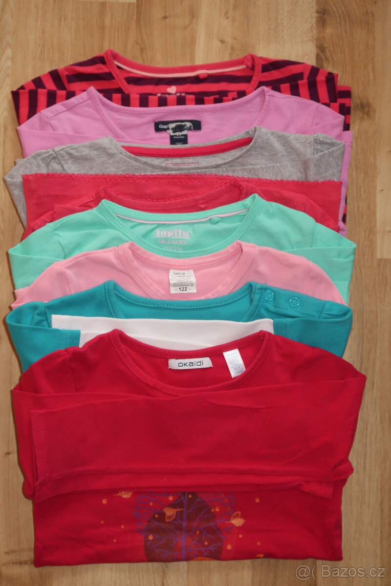 Červené - elastický materiál, potisk v pořádku. Odpovídá vel. 104. Délka od ramene 38cm. 40,-