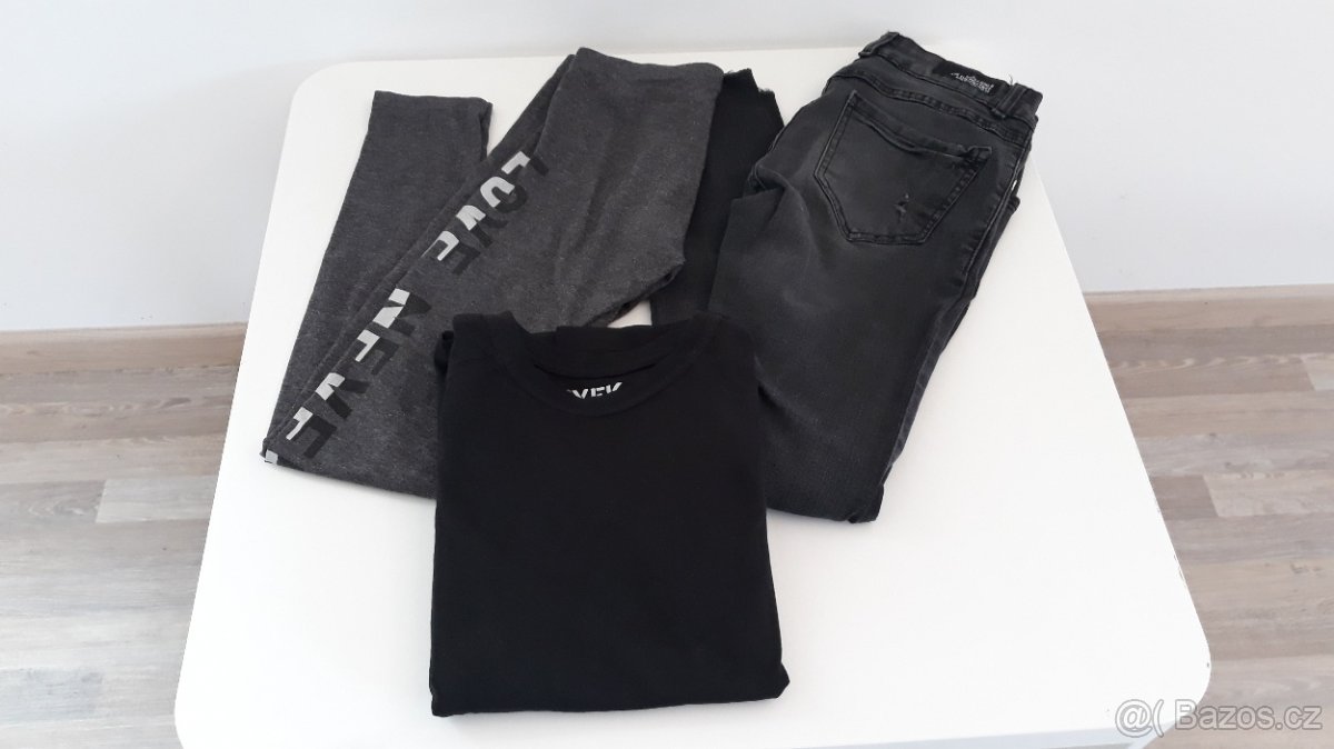 Prodáme dívčí, popř. dámské nošené, ale stále pěkné džíny a černé triko s dlouhým rukávem. Obojí za 120 Kč, popř. jednotlivě: