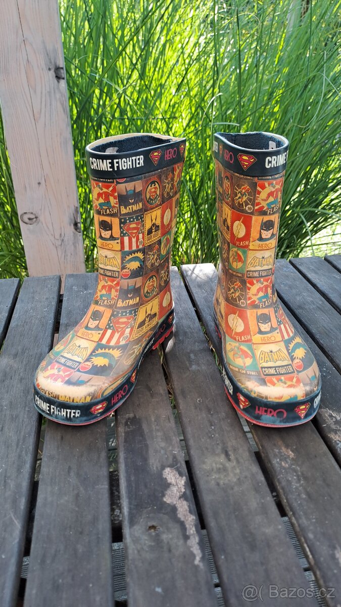 Holínky s motivem Batman nebo Superman, velikost 29/30. Možné poslat přes zásilkovnu nebo balíkovnu.