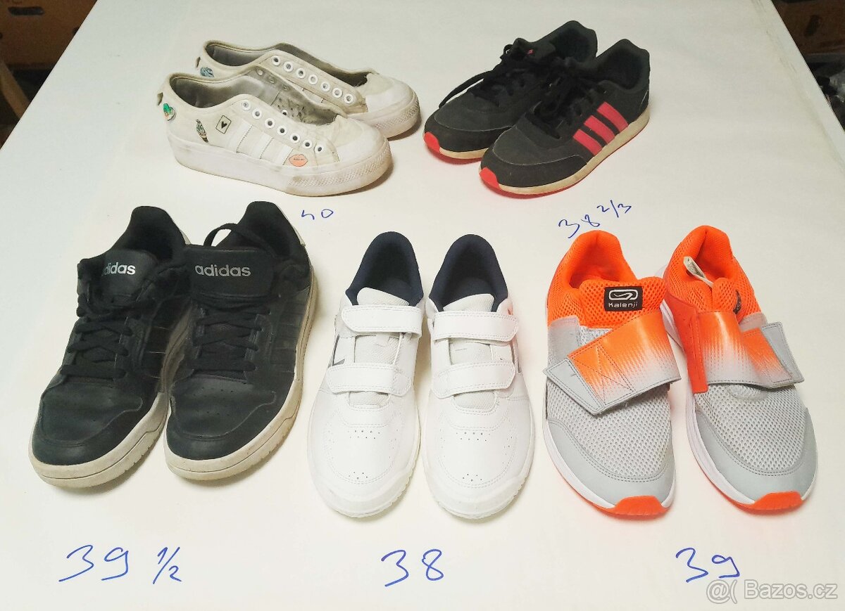 přední řada 1x adidas nošené ale bezvadné, 2x z decathlonu /použité párkrát v tělocvičně -velmi dobrý stav,