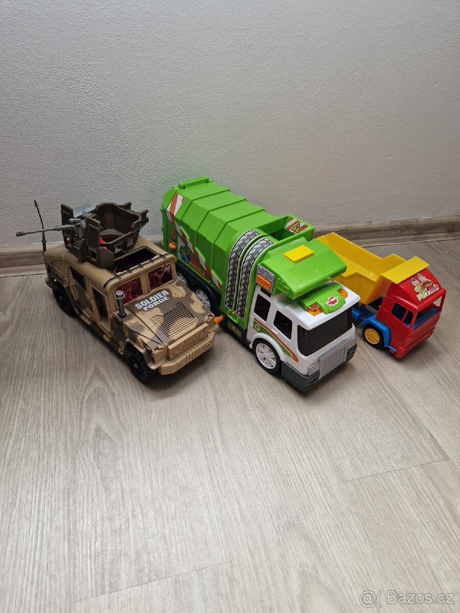 Kamiony a auto vydavající zvuky - [26.12. 2025]Kamion Playtive vystřeluje autíčka, hotwhels hodně pater (převoz spousty aut), bílé vydává zvuky a samo se rozjíždí. Zelenému kovovému kamionu chybí přípojka na připojení návěsu.