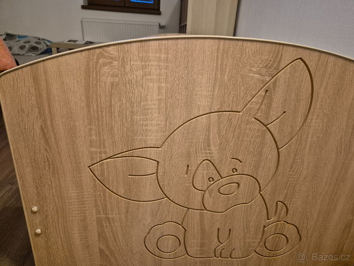 Dětská postýlka 160x80 - [30.12. 2025]Dětská postel. Rozměr matrace je 160x80. Prodáme komplet včetně roštu a matrace (cca 1 rok stará). Drobná kosmetika od používání. Záslepky lze dokoupit v hobby marketech.