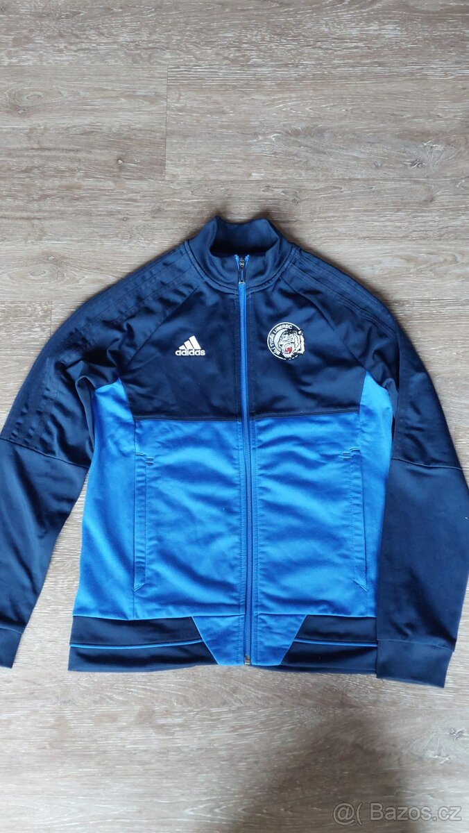 Prodám tréninkovou mikinu se znakem HC Bílí tygři Liberec, zn. Adidas, vel. 152 na 11-12 let. Délka od krku 53 cm, šířka 44 cm, délka rukávu od krku 70 cm. Postranní kapsy na zip, kolem kapes drobné žmolky od praní, jinak bez vad. Osobní odběr v Liberci, nebo poslání přes Zásilkovnu.