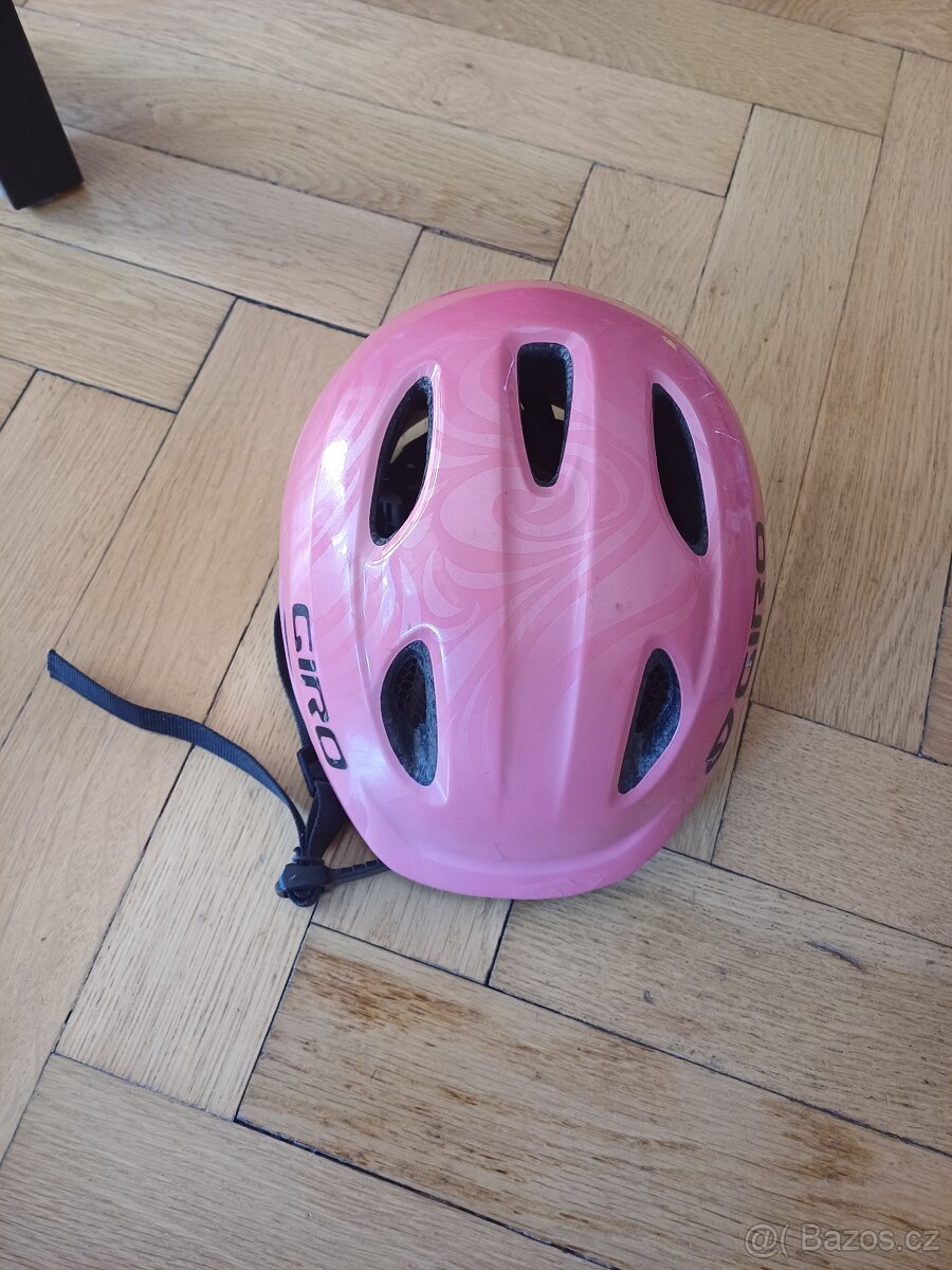 Prodáme dětskou helmu giro. Velikost xs 45-49cm. Vrchní plast praskliny viz foto, nema fliv má funkčnost.