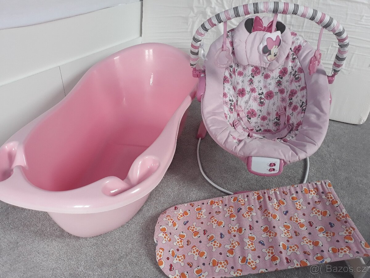 Nabízím k prodeji dětskou vaničku (délka 101cm, šířka 50 cm, výška 32 cm), lehátko do vaničky (délka 52 cm, šířka 27 cm), lehátko které hraje a vibruje ( délka 60 cm, šířka 52 cm, výška 56 cm). Vše je po jednom dítěti, nic není poškozený. Cena je za všechno.