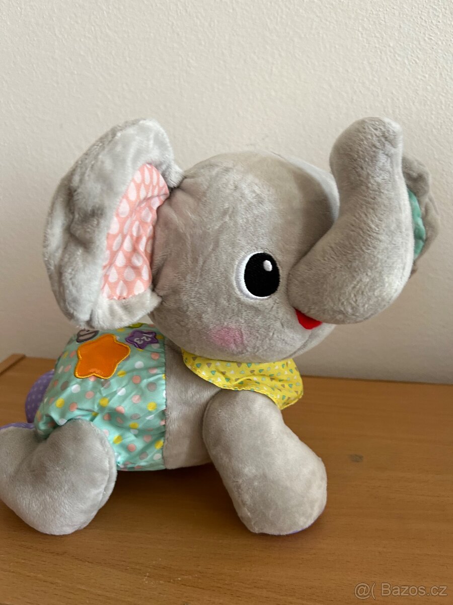 Nový pouze rozbaleny,na tužkove baterie- součástí , slon leze, zpívá , počítá, hýbe ušima . Jazyk je v němčině .