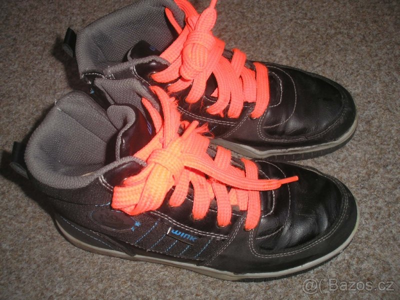 Prodám černé kotníčkové boty zn.Wink,vel.34 (stélka 22,5 cm).Nošeny-boty nesou známky běžného opotřebení,ale jinak v pořádku.Boty mají koženou zdravotní stélku.Cena 220,- + pošta.
