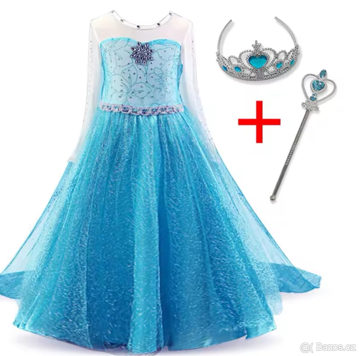 DOPRAVA ZDARMA! Nový kostým/šaty Elsa vel 120 včetně hůlky a čelenky.