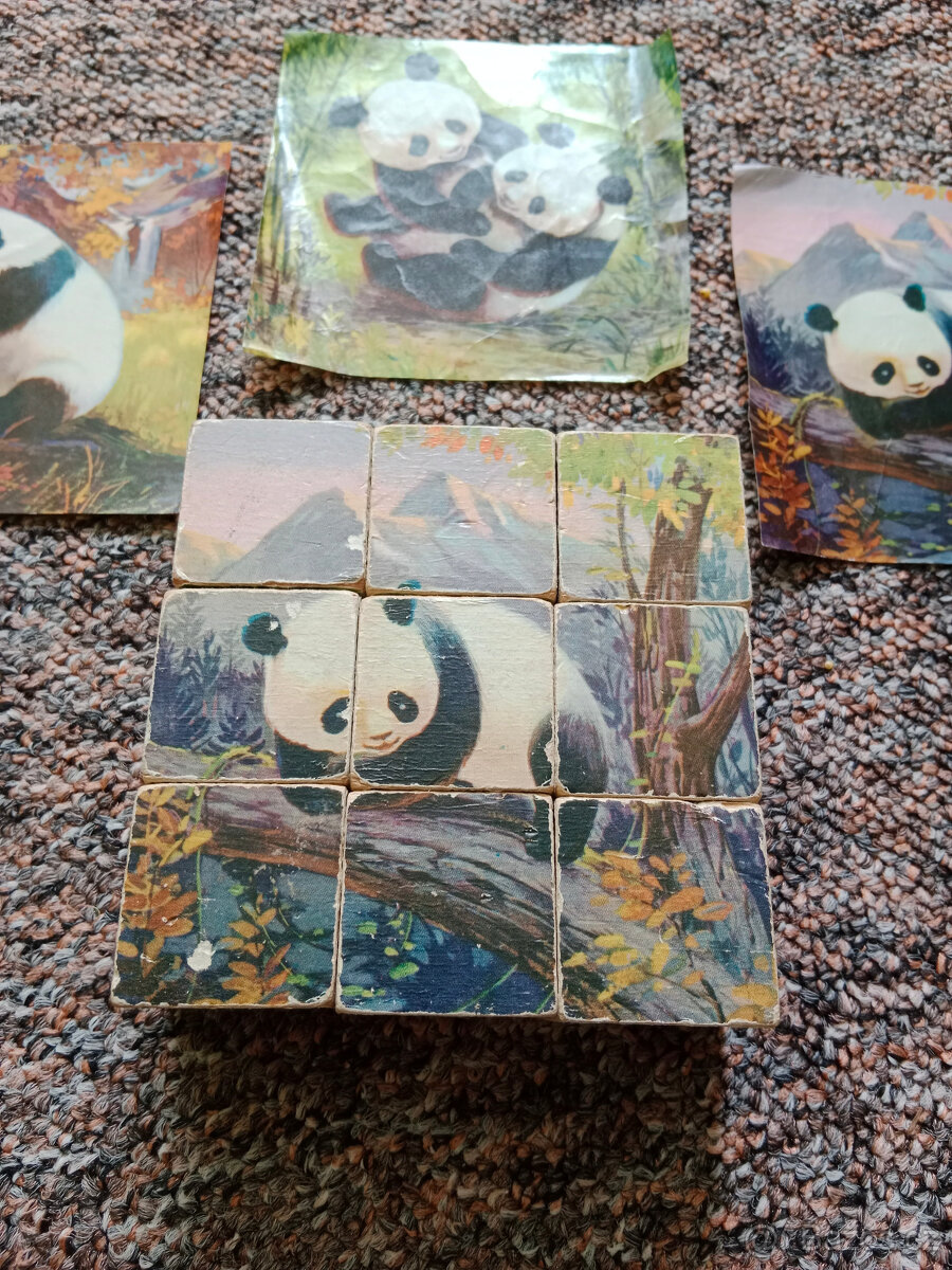 Nabízím retro dřevěné kostky s motivem pandy. Původní, originál.