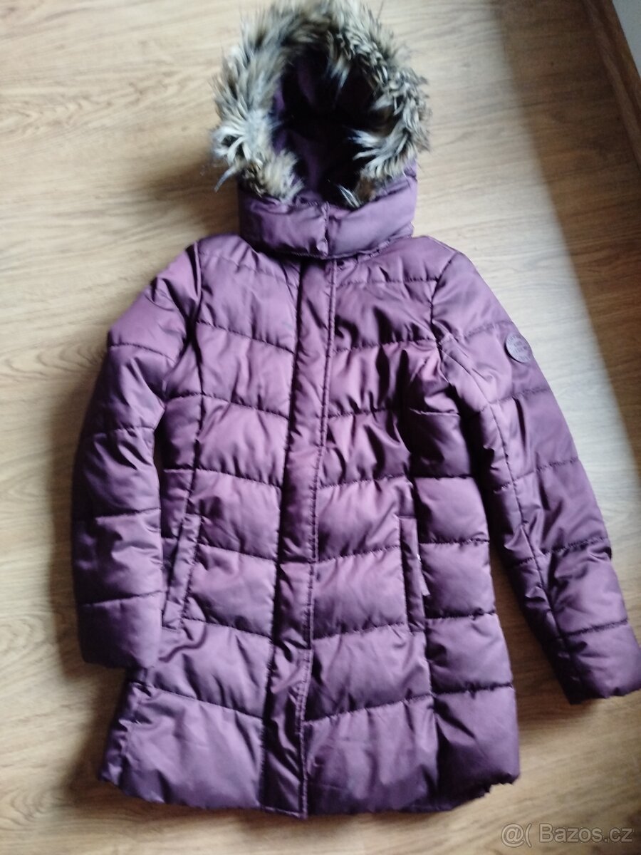 Prodám teplý kabát vínové barvy vel.164, kapuce odepínací.