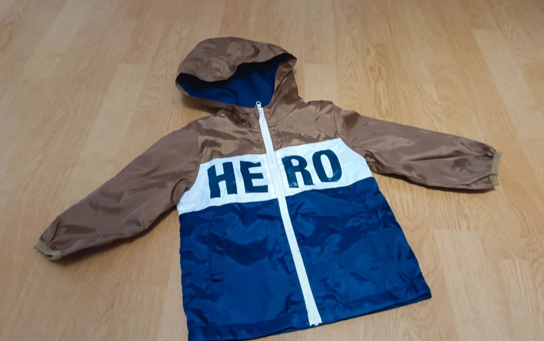 Přechodová bunda 110 - [1.1. 2026]Modrá přechodová mírně vyteplená chlapecká bunda Cool club vel. 110. Délka od ramene u krku dolů 44,5 cm, zadní díl 46 cm, šířka pod rukávy 35 cm. Vada: na zadní straně malé zatržení látky (menší než 1 cm), zašito, ale bude potřebovat našít nášivku. ...