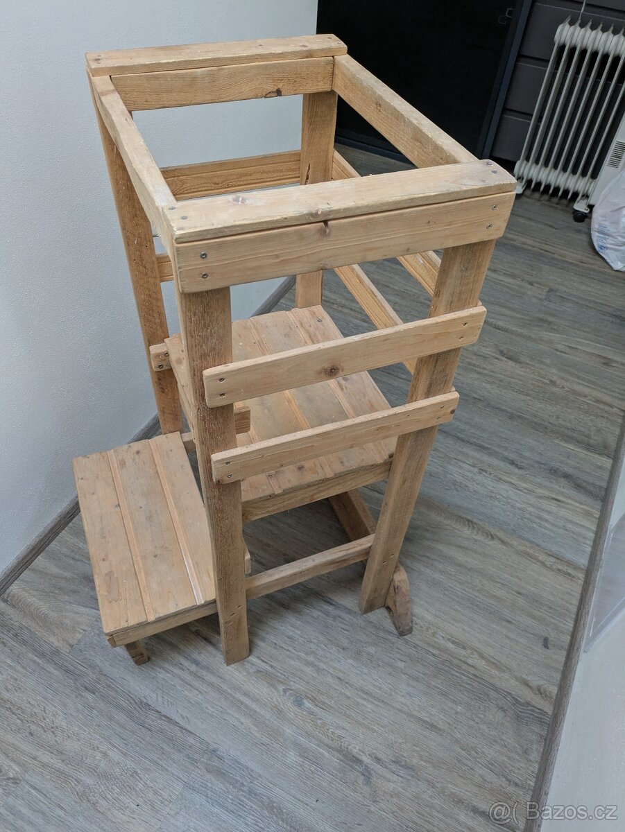 Prodám dřevěnou doma vyrobenou učící věž. Velikost nahoře cca 47x36 cm, dole cca 58x59 cm, výška cca 99 cm. Možno vidět v Brně Černovicích.